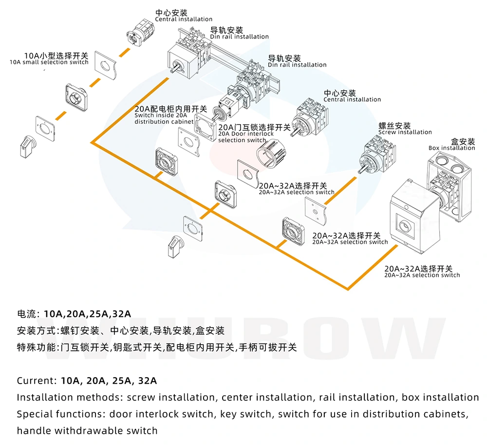 Suis Cam Pemasangan Rel Tiga Kedudukan DIN 32A serasi secara meluas dengan alatan mesin CNC dan pelbagai peranti elektrik, sesuai untuk pelbagai senario seperti kawalan litar, perlindungan pencahayaan dan kawalan motor. Sebagai pembekal yang boleh dipercayai, YAMING memastikan kualiti produk melalui kawalan pengeluaran yang ketat di kilangnya sendiri, menjadikannya pilihan ideal untuk aplikasi sistem kawalan elektrik global.