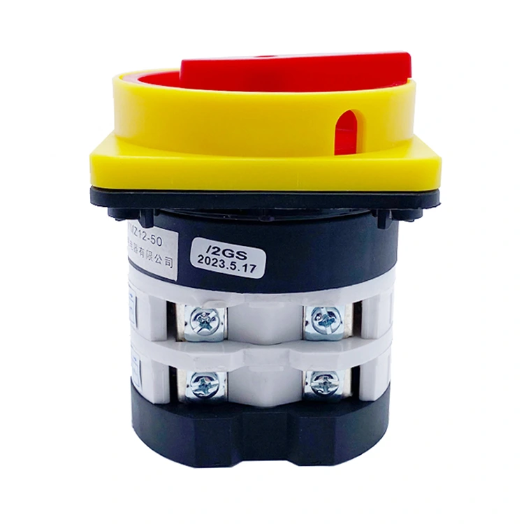 50A Padlock OFF-ON Two Positions Combination Rotary Cam Switch (model dalaman: YMZ12-50GS) direka bentuk untuk sistem elektrik AC 50 Hz, dengan voltan terkadar sehingga 690V AC dan 240V DC, dan arus undian 50A.