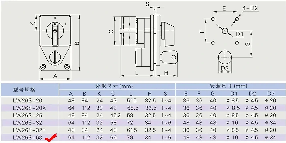 YAMING, pengilang suis elektrik profesional dengan kepakaran mendalam lebih 30 tahun, melancarkan Suis Cam Tukar Kawalan Kunci LW26 63A (model dalaman: YMW26-63YS4) di China. Ia boleh digunakan untuk litar AC 50HZ dengan voltan terkadar ≤690V dan litar DC dengan voltan ≤240V, menyokong arus undian 63A. Dengan reka bentuk padat, fungsi komprehensif dan prestasi keselamatan yang sangat baik, ia digunakan secara meluas dalam penukaran litar utama, kawalan motor langsung, kawalan arahan dan senario pengukuran, dan boleh menyesuaikan diri dengan pelbagai persekitaran kerja yang keras.