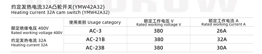 Siri YMW42 tersedia dalam spesifikasi 20A dan 32A, dengan reka bentuk struktur yang dioptimumkan untuk memastikan operasi yang tepat dan stabil: